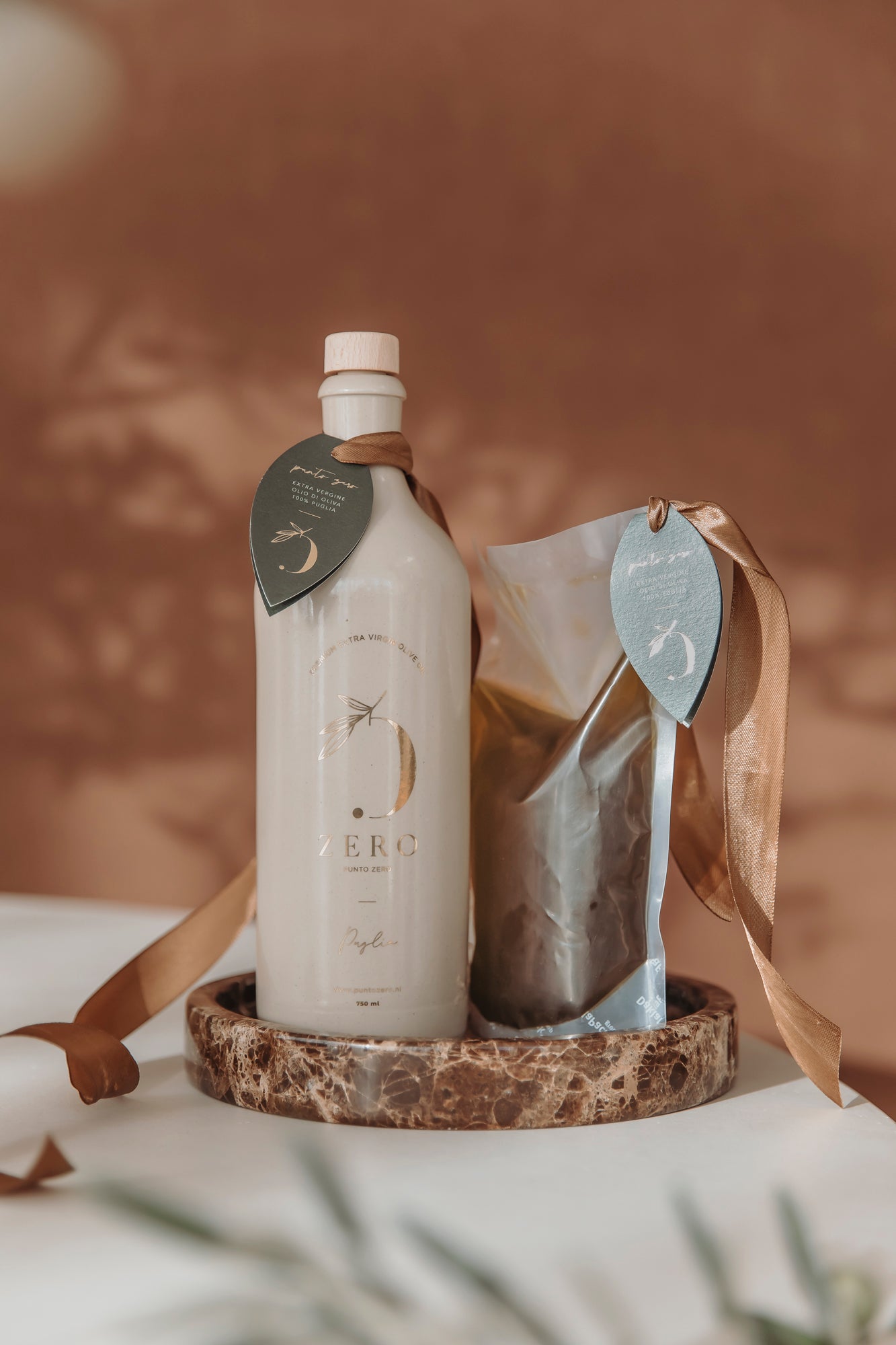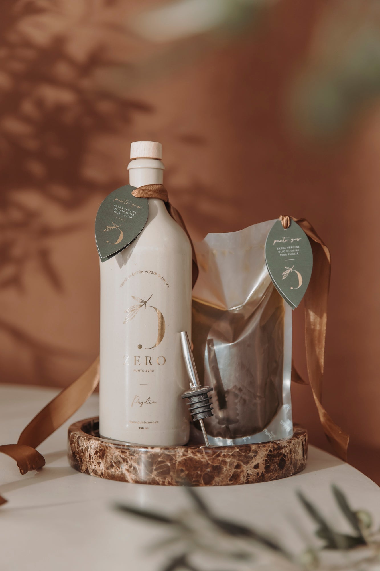 Onder de zon van Zuid-Italië, tussen de rode aarde en het zilvergroene blad van onze eeuwenoude olijfbomen, begint elk najaar ons ritueel. De dauw ligt nog op de grond, de lucht ruikt naar gras en aarde, en tussen de takken glanzen de eerste rijpe olijven. Eén voor één plukken we ze met de hand — want alleen zo blijft de natuur ons haar mooiste geven.